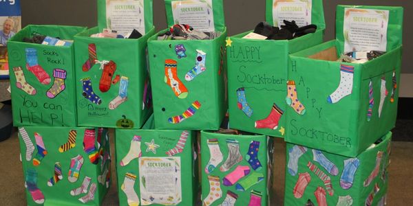 Socks + October = SOCKTOBER a sock drive that takes place during the entire month of October. GNN kids put on this annual community service project to learn about giving back and helping those less fortunate in a meaningful way that even the littlest hands and minds understand the importance of something as simple as socks.
